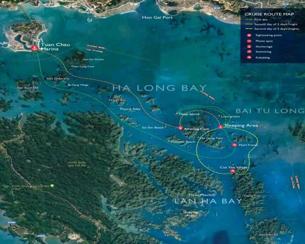 08:30 - 10:00: Transfer to Alisa Day Boat for exploring luon cave where you can enjoy kayaking or rowing bamboo boat with local people or by yourself. Continue cruising and passing through the Stone Dog Island. This Island is another fascinatingly shaped limestone rock in the bay.