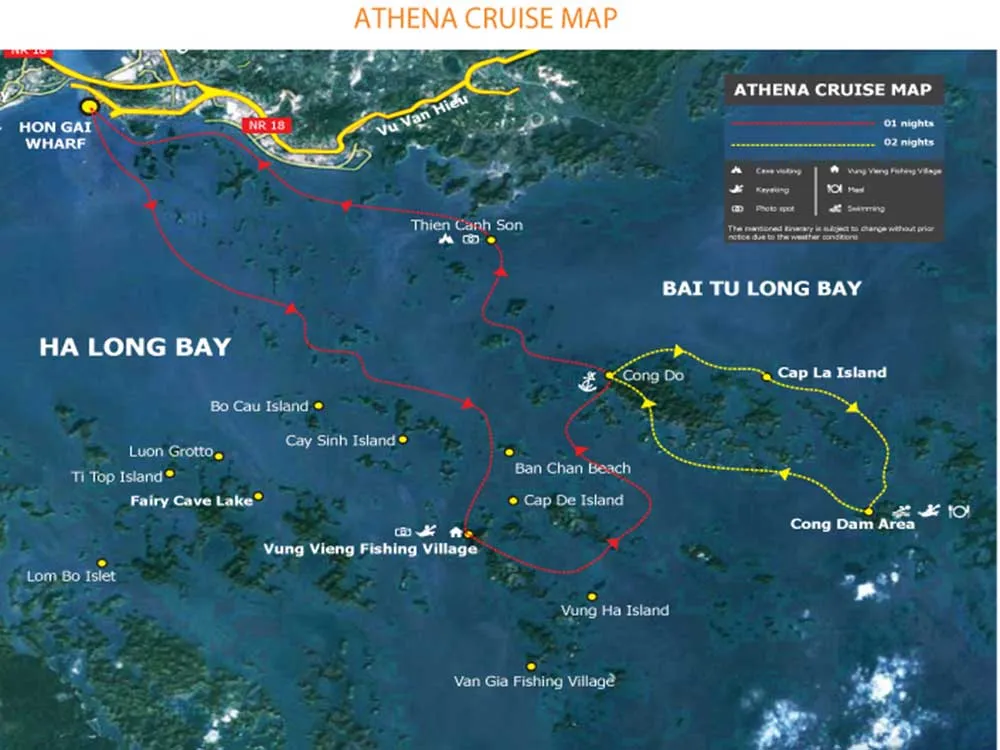 The Athena Cruise is the brand new five-star luxury cruise. The journey from the legendary Ha Long Bay to the less-traveled Bai Tu Long Bay will give you a unique experience