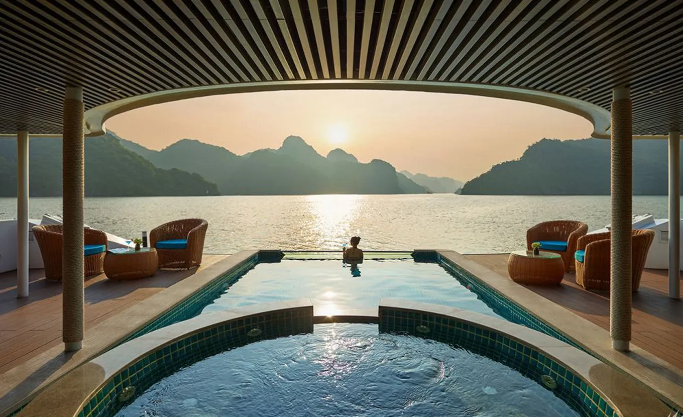 17:00 - 18:00: It’s time to relax at the Spirit of the Sea Lounge and the Ocean Sky Sundeck. Enjoy Happy Hours with a "Buy 1 get 1 free" program, snacking on freshly prepared treats while the sun sets over Lan Ha Bay.