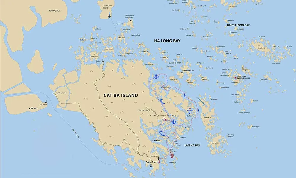The Cat Ba Ocean Cruise will lead you to the places in Lan Ha Bay which still remains in pristine, untouched surroundings offering the same beauty and spectacular scenery without the crowds.