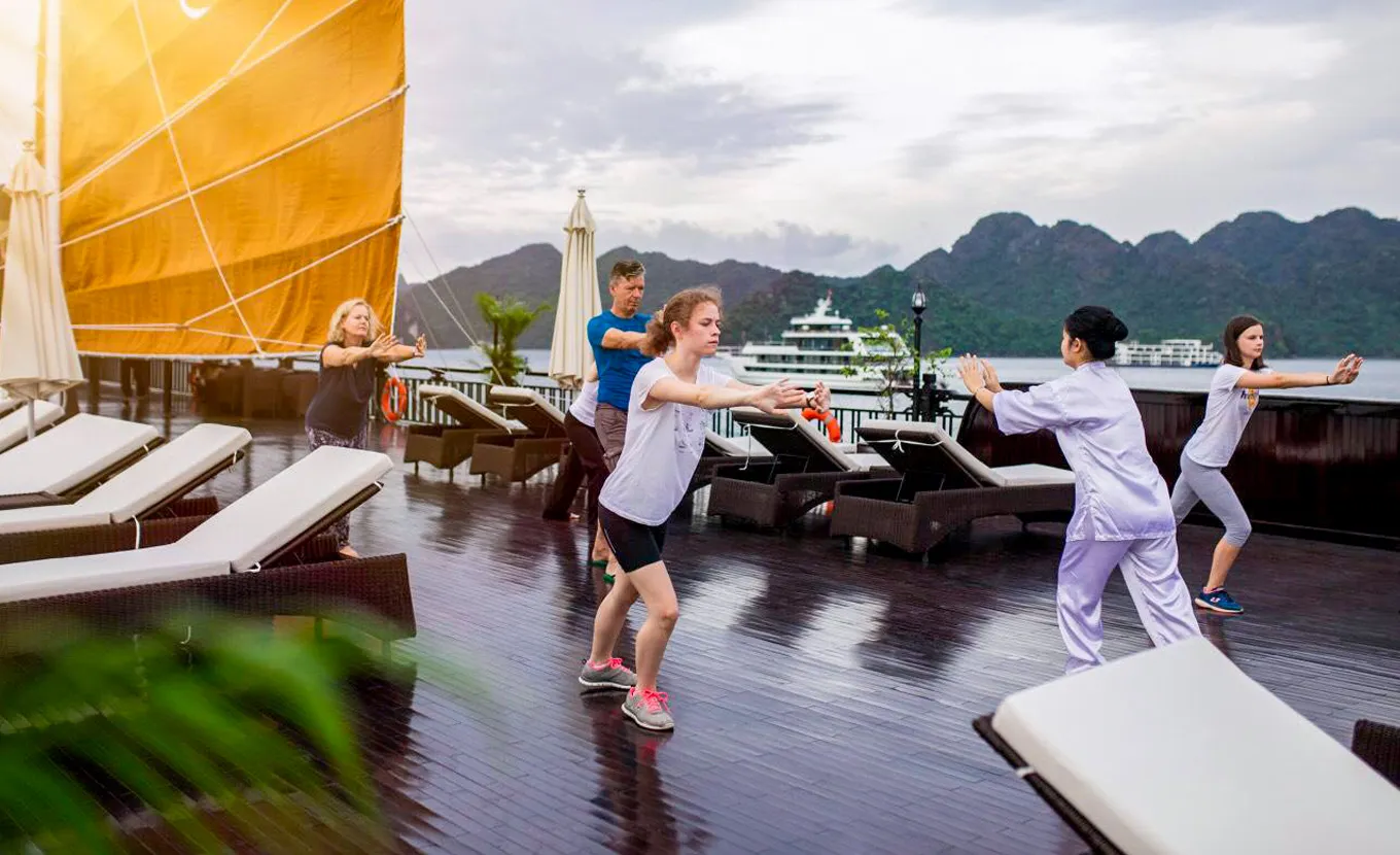 6:00: Start the day with Tai Chi exercise on the cruise's rooftop to witness the bay's sunrise.