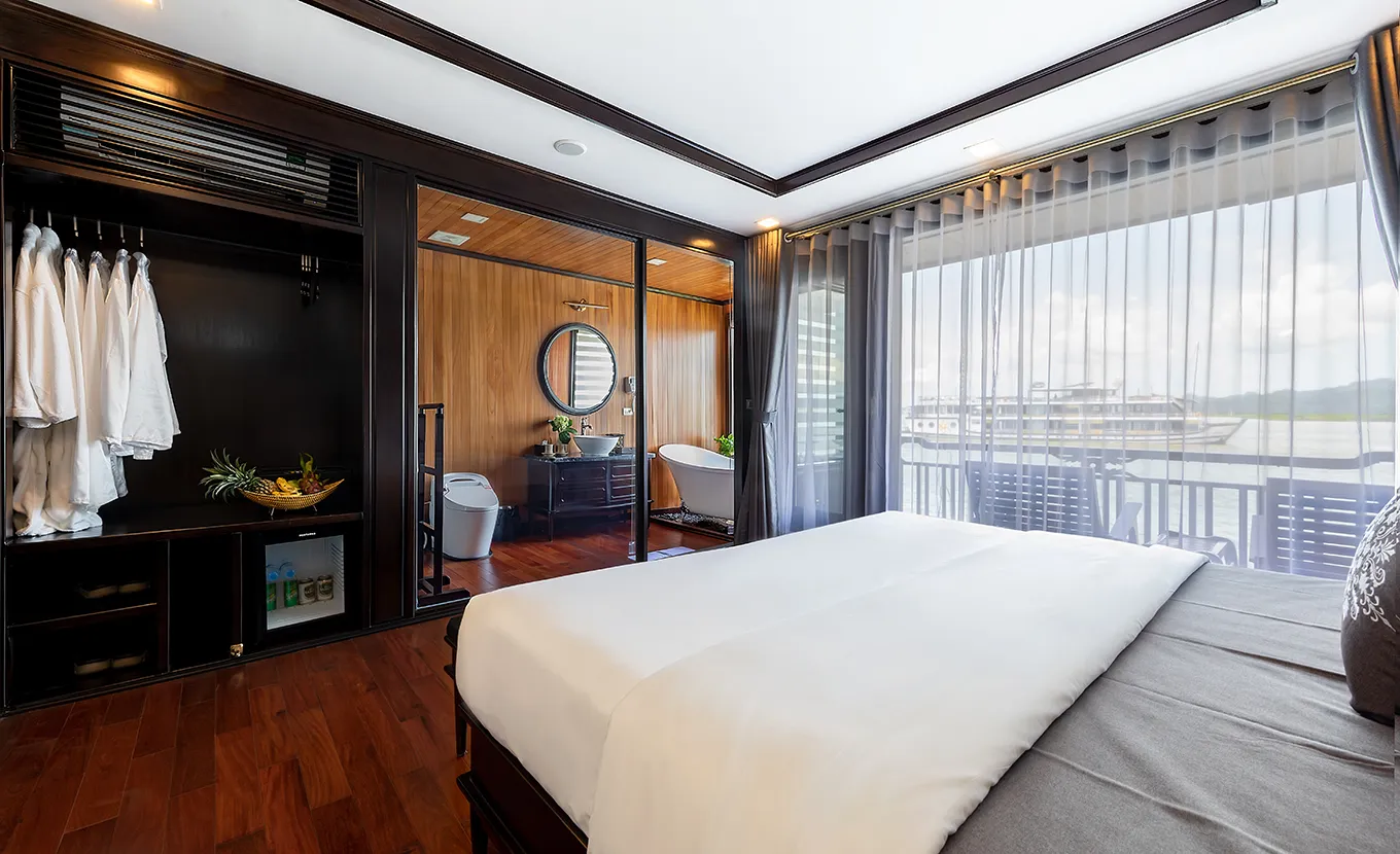 12:30 Transfer by speedboat from Tuan Chau Marina to La Regina Legend Cruises. Once boarded, you’ll be welcome drinks will be served as the Cruise Manager briefs you on the cruise familiarization, activities, and onboard safety. The boat will then start cruising along Lan Ha Bay.