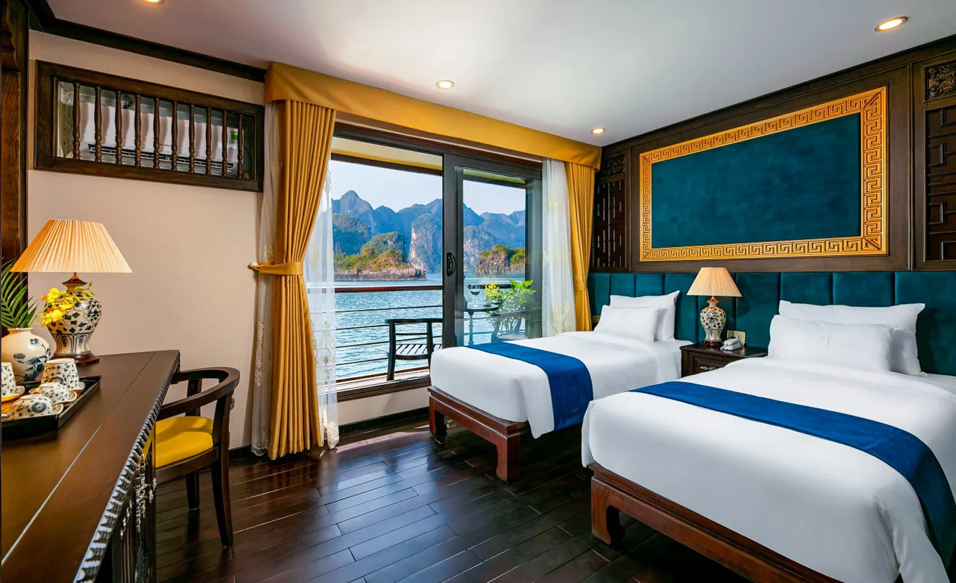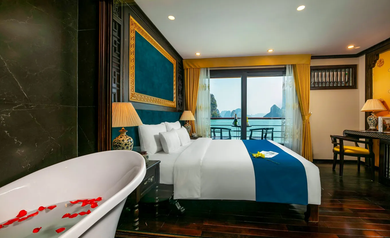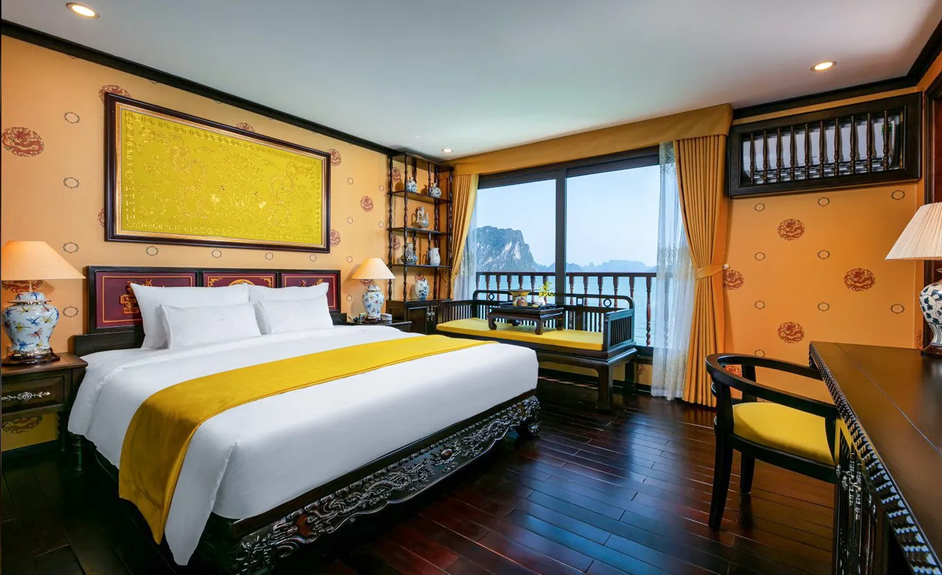 The Nostalgia Cruise is thoughtfully crafted to bring the history of the Nguyen Dynasty and its royal architecture to life. Launched in early February 2023, Nostalgia features 10 luxurious cabins and introduces a fresh route covering Halong Bay and Lan Ha Bay. Opting for the 2-day 1-night cruise ensures a thorough exploration of the site, a peek into the traditional lives of fishermen, and ample time to relax amidst Vietnam's stunning scenery.