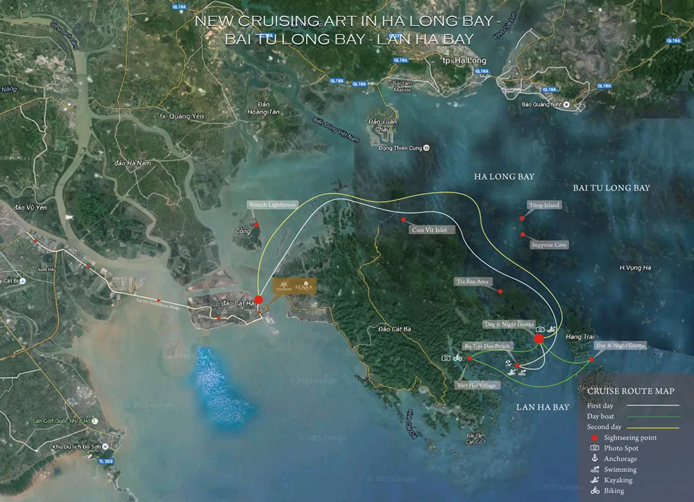 15:30: We will visit the Dark and Bright Cave - famous for the pristine natural beauty and poetic, attractive seascape of Lan Ha Bay. Here you will take some photos of the romantic, lyrical local see-sights. This is also the best time for tourists to enjoy bamboo boat and swimming - which is an interesting activity to discover the truest beauty of the limestone mountains and the blue sky of LanHa Bay. Afterwards, visitors immerse in the emerald green water of LanHa Bay with exciting swimming activities or enjoy mini pool with jacuzzi on Peony Cruise.