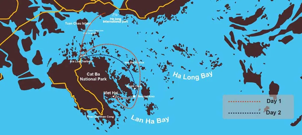 15:00: Prepare for a memorable adventure to Sang Cave, where you can choose to either kayak or take a rowing boat. The path leading to the cave is a 70-meter stretch of glistening water, with sunlight playing on the sparkling karst formations. Afterward, you're invited to explore the tranquil and emerald beauty of Ech Lagoon, a perfect spot for kayaking and swimming. It's a unique opportunity to immerse yourself in one of the most remote corners of Lan Ha Bay.