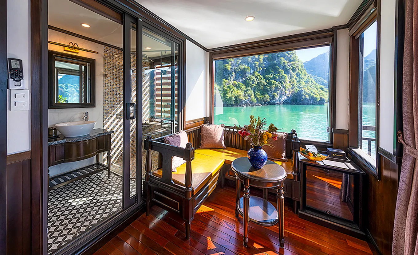 11:30 – 12:00: Arrive at Tuan Chau Harbor. Transfer to the main boat by tender. Embark on Sena Cruise. Warmly welcome to Sena Cruise! While enjoying a welcome drink, our cruise manager will deliver a cruise briefing and safety introduction. After that, you will check in to your cabin.