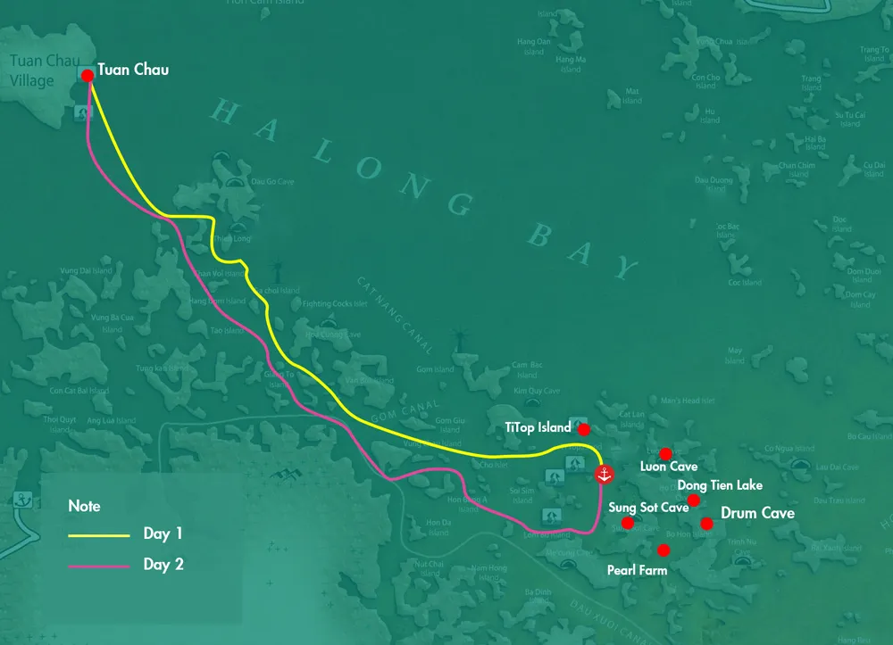 15:45: Leaving Surprise cave, transfer by tender to the Titov island was named by Uncle Ho, after Gherman Stepanovich Titov - the Soviet astronaut who visited in 1962 Enjoy swimming, relaxing on the beach or climb the steps of the Rock to the top of the island. On the top of the mountain, you can see corner of magical Halong Bay.
