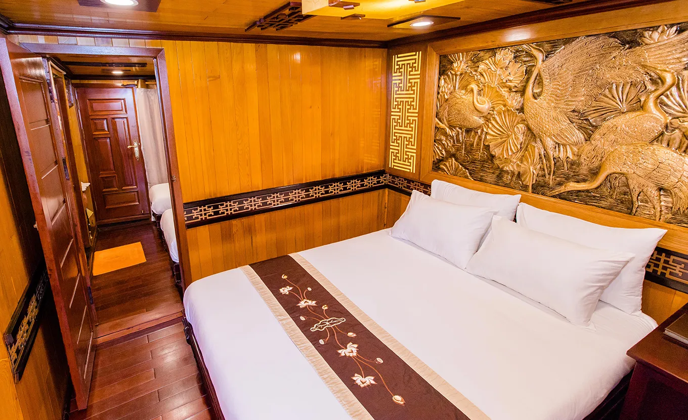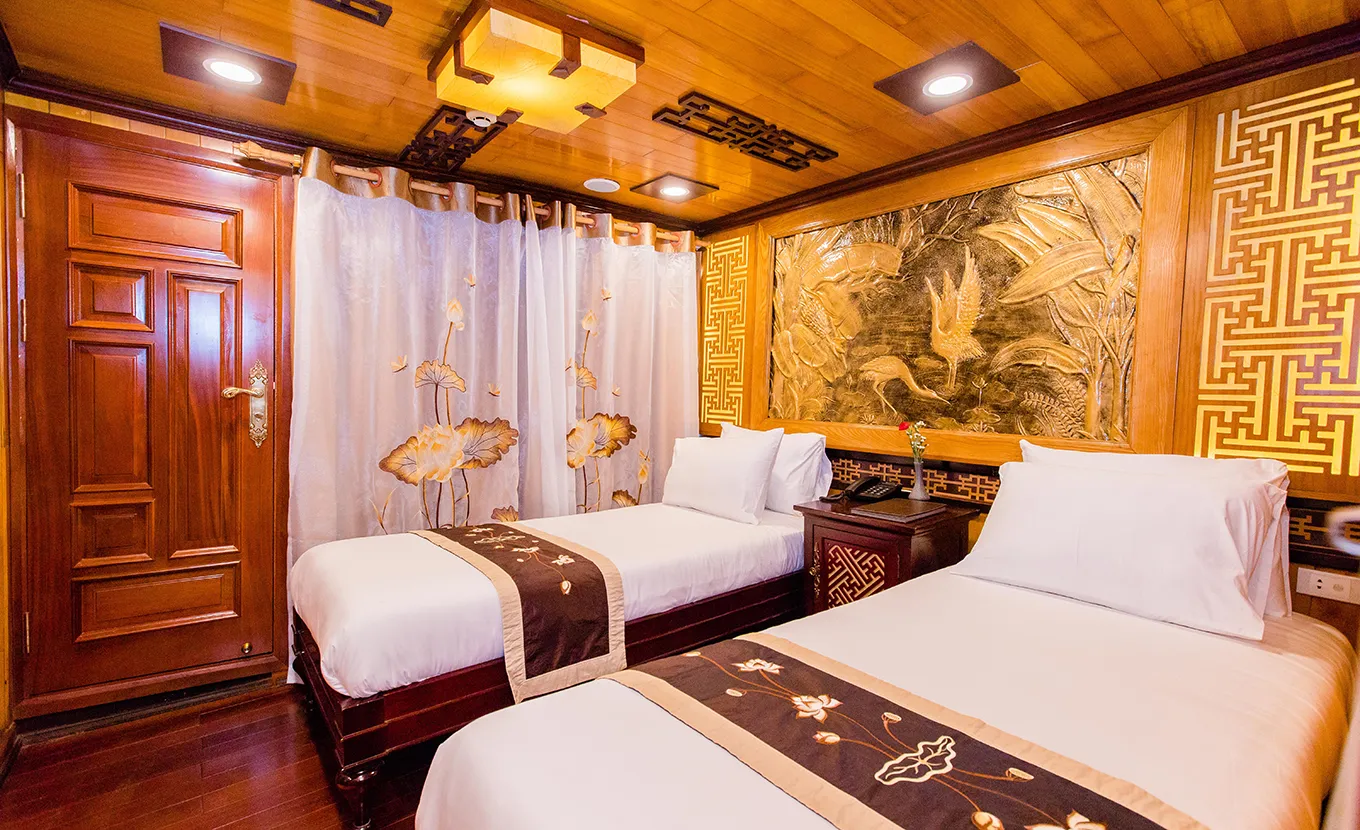 Inspired from traditional junk manufacturing, Victory Cruise is the symbol of Halong Bay’s legendary beauty. Tropical precious wood, fine arts decorations and a devoted staff will lead you to an amazing journey discovering Ha Long Bay.