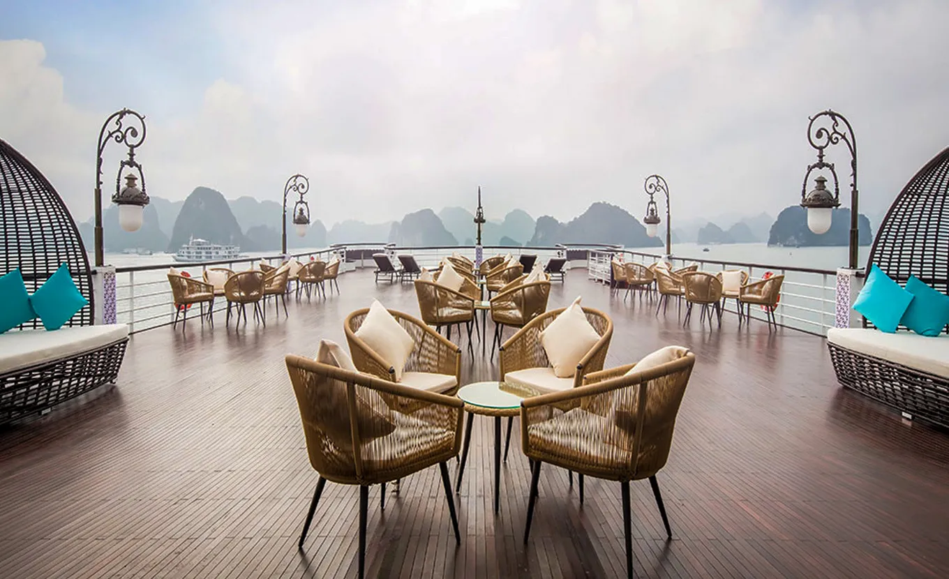 Embark on an unforgettable journey to the stunning Halong Bay aboard the luxurious Ambassador Cruise. This extraordinary 5-star cruise ship boasts an elegant design with twin sundecks, two exquisite restaurants, an open-air Jacuzzi pool replete with top-notch amenities, and a lineup of spectacular entertainment activities to ensure a unique experience.