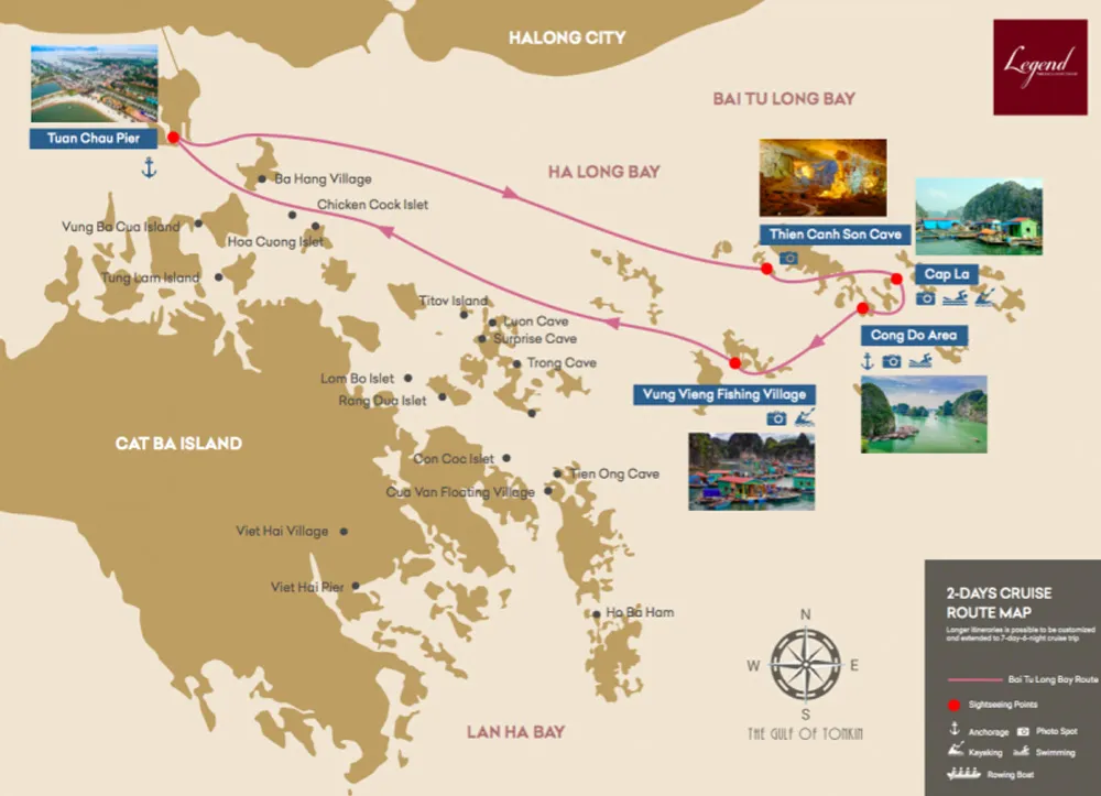 2 day 1 night aboard Bhaya Legend takes you off the beaten tracks with magnificent natural landscape of Bai Tu Long Bay. Halong’s beautiful neighboring bay offer tranquil and more private sites. Secure your privilege by an exclusive itinerary and accommodation with us. Explore stunning limestone towers and emerald water then sit back and enjoy the exquisite cuisine.