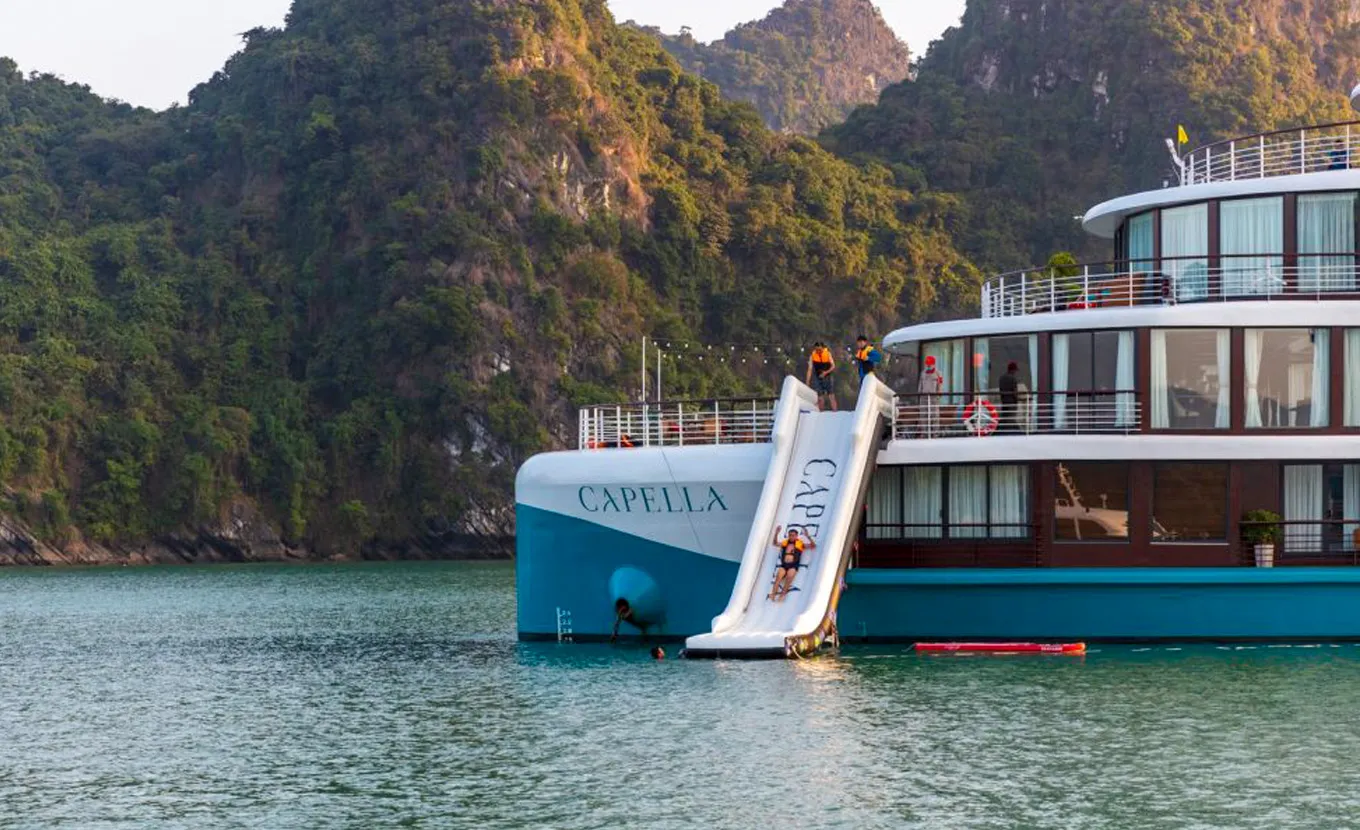 12:10 - 12:45: We'll transfer by Tender boat from Tuan Chau Port to hop onto the Capella cruise.