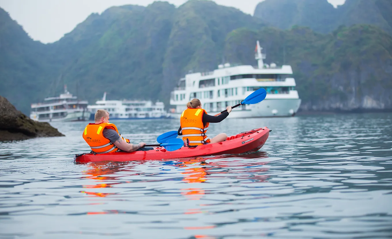 15:00: The final part of the cruise takes us through the Cua Van area to Lan Ha Bay (part of Halong Bay). The 300 or so karst islands and limestone outcrops of Lan Ha are stunning with their pristine, snow-white beaches. You can explore Ba Trai Dao beach via kayaks or immerse yourself in the crystal clear waters.