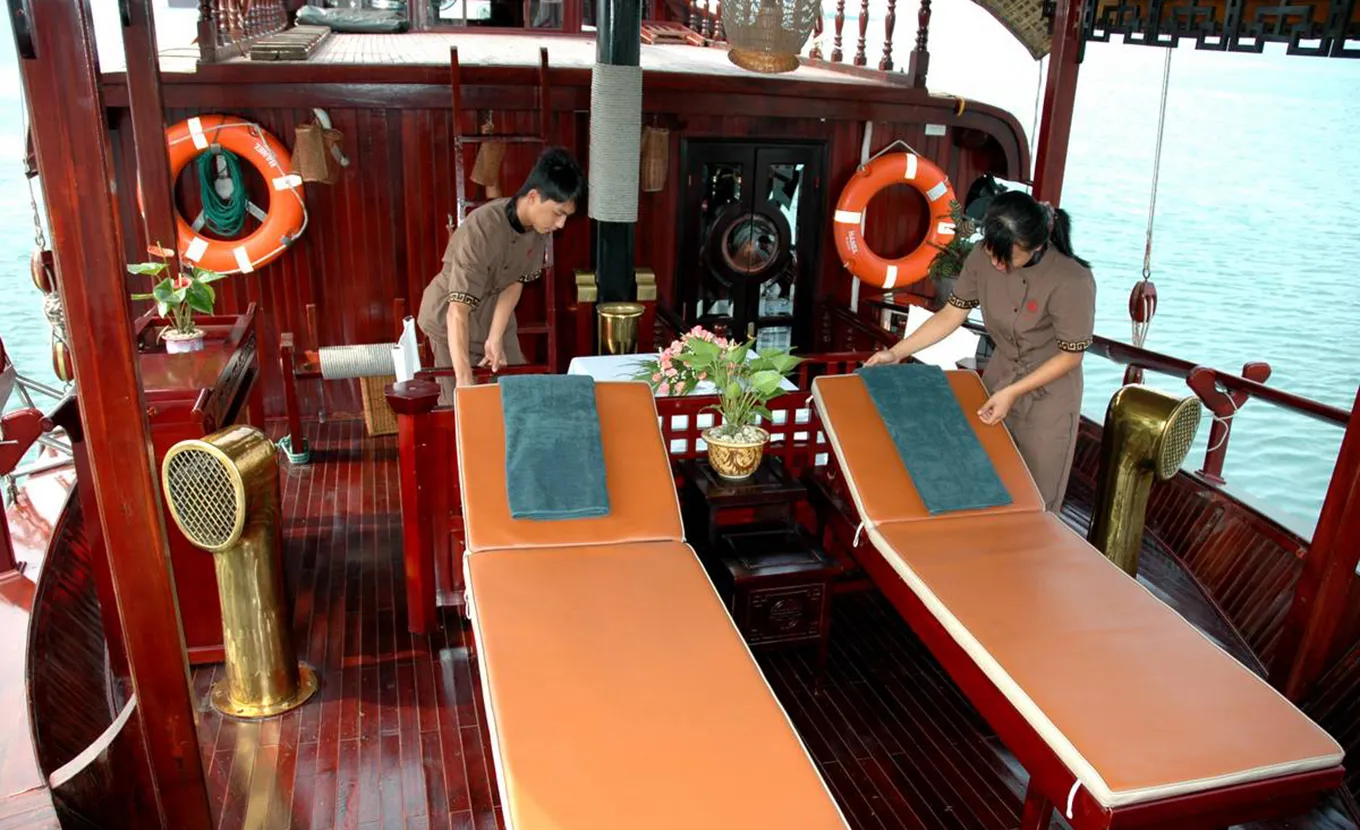 Our L’Amour Junk is designed in the style of the traditional sailing boats and was the first small deluxe one-cabin junk in Halong Bay. It is an ideal option for a couple on a romantic trip.