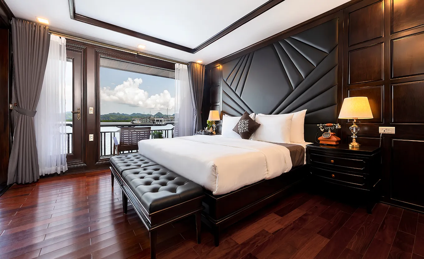 13:15 A delicious set lunch is served in Ha Long Restaurant while the cruise sails past Chan Voi (Elephant Feet) and Tra Bau Area.