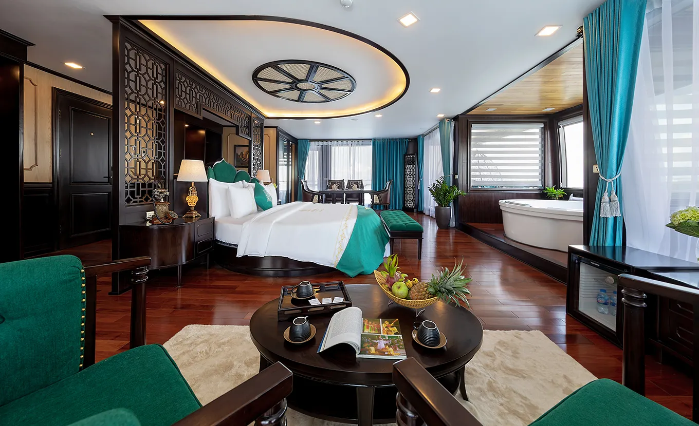12:30 Transfer by speedboat from Tuan Chau Marina to La Regina Legend Cruises. Once boarded, you’ll be welcome drinks will be served as the Cruise Manager briefs you on the cruise familiarization, activities, and onboard safety. The boat will then start cruising along Lan Ha Bay.