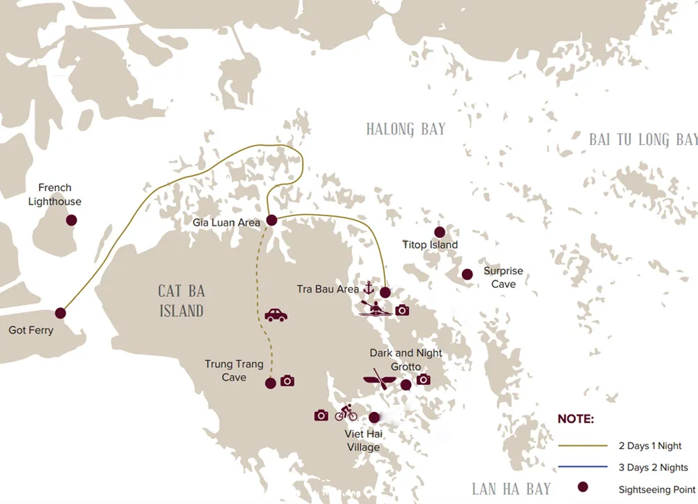 - Option 3: Boarding tender for a ride around Viet Hai fishing village that can combine with swimming at a beach nearby.