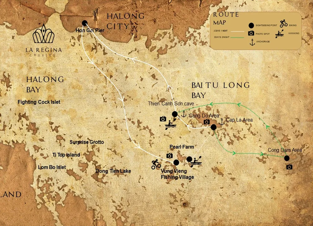 Welcome to La Regina Royal the cruising through-out Ha Long Bay - the world heritage with the magnificent scenery of thousand islands as well as tasting the best Vietnamese & international cuisines made by our experienced chefs. Filled with modern comfort, passengers will find their own tranquil escape from the fast pace of everyday life. The three-day itinerary offers you the best chance to deeper discover one of the most beautiful lanscapes on earth.