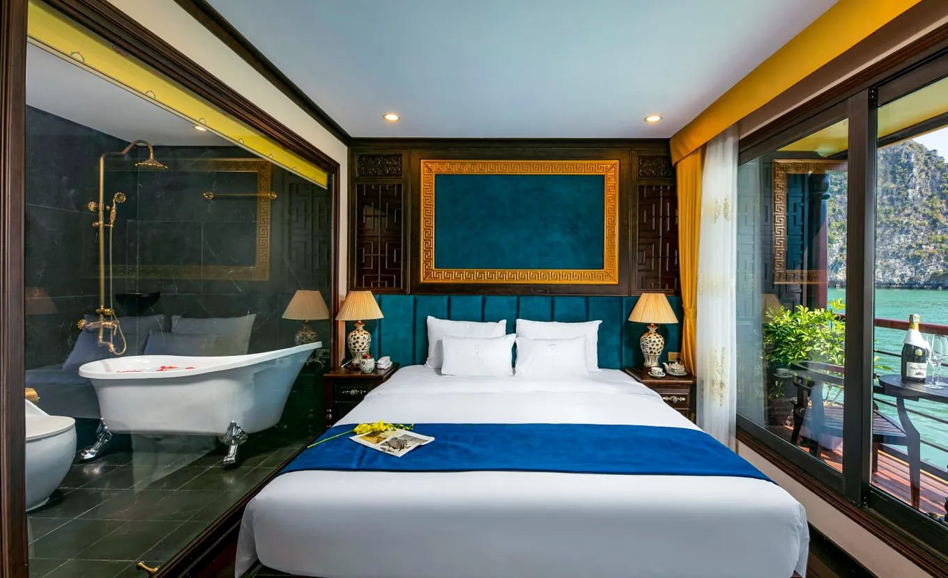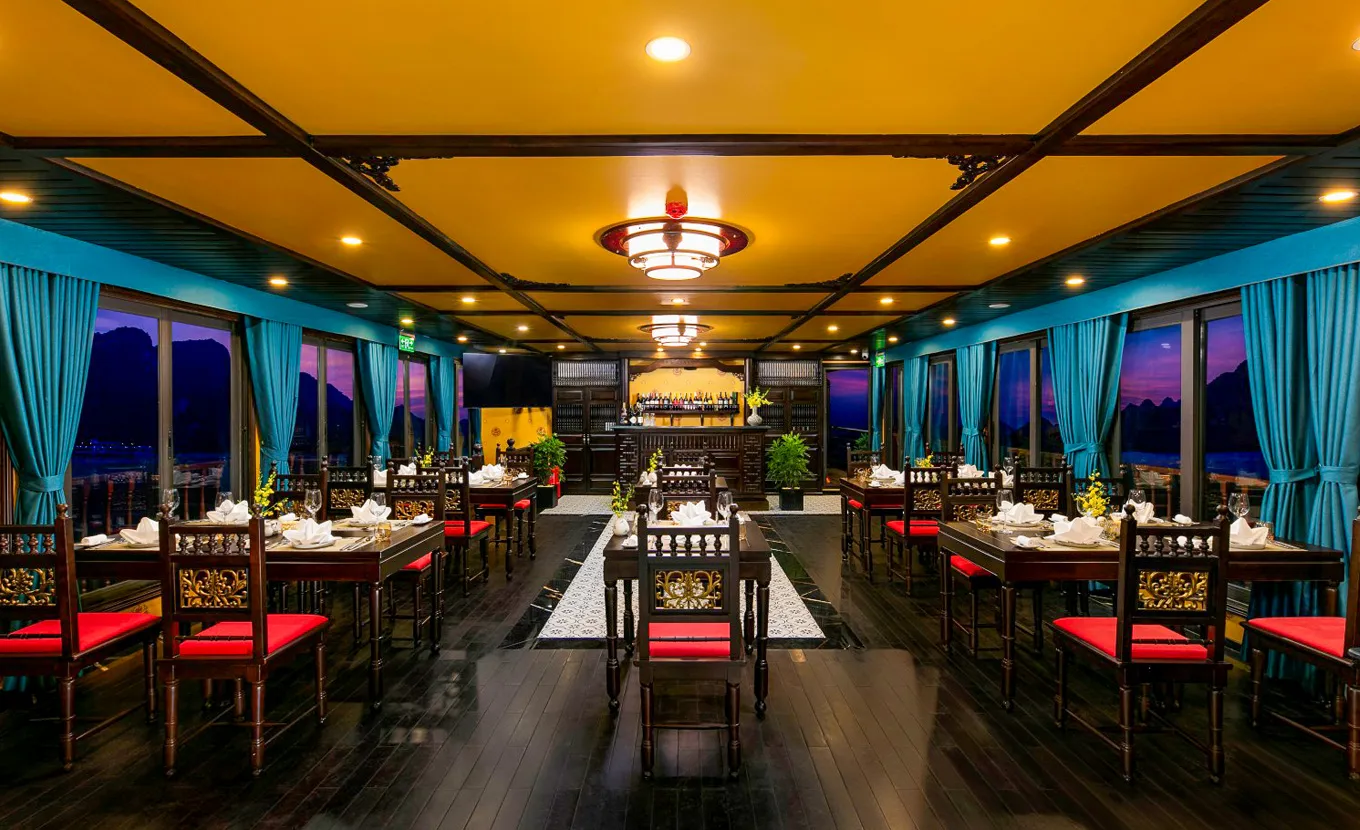 The Nostalgia Cruise is thoughtfully crafted to bring the history of the Nguyen Dynasty and its royal architecture to life. Launched in early February 2023, Nostalgia features 10 luxurious cabins and introduces a fresh route covering Halong Bay and Lan Ha Bay. Opting for the 2-day 1-night cruise ensures a thorough exploration of the site, a peek into the traditional lives of fishermen, and ample time to relax amidst Vietnam's stunning scenery.