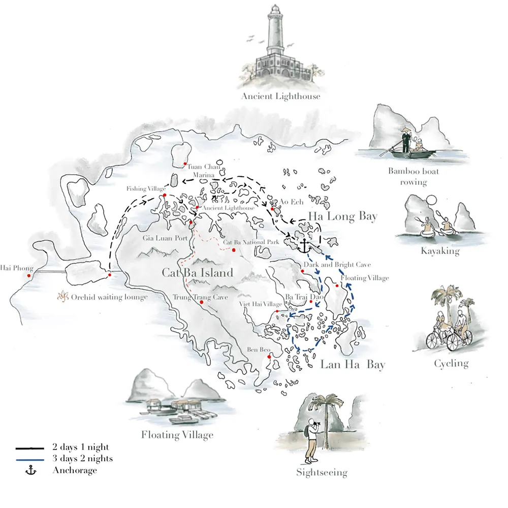 11:30: Disembark Orchid Premium cruise at Tuan Chau Marina, say best wishes, end your cruise with us.