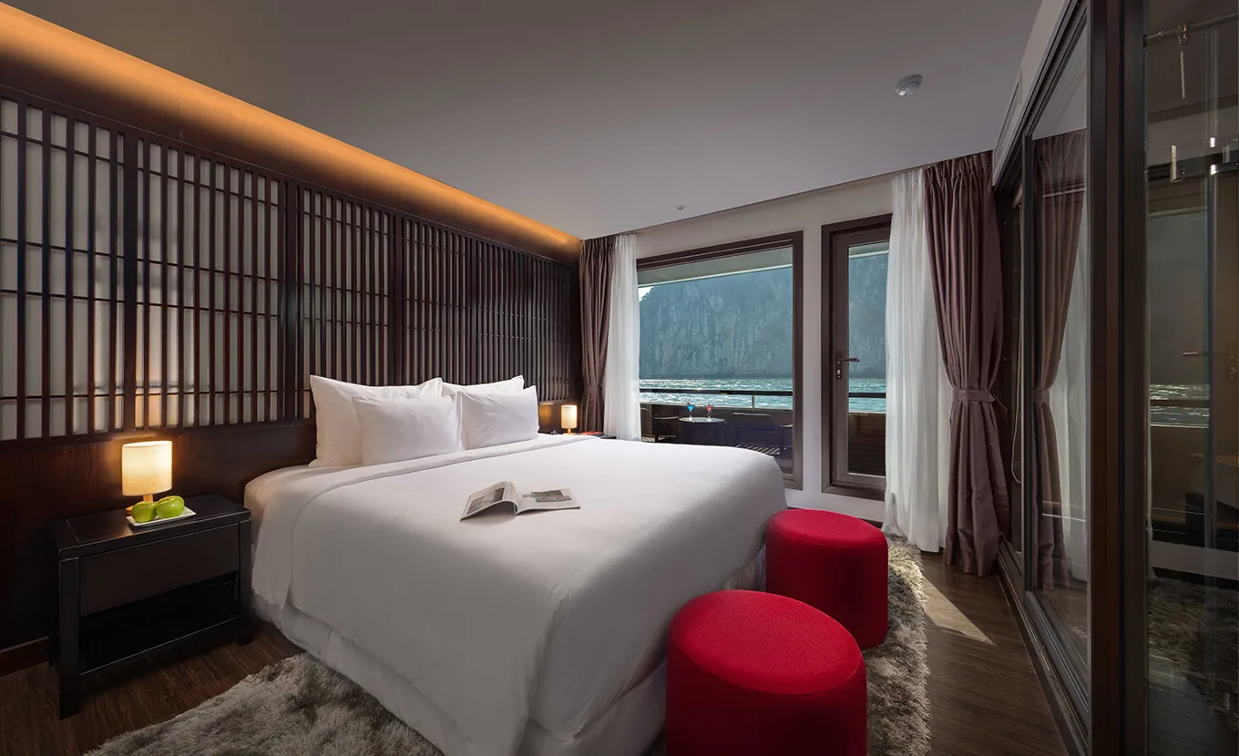11:30: You'll arrive at the Scarlet Pearl Cruise's Lounge in Halong International Cruise Port for check-in. We'll offer you a welcome drink and provide important instructions to ensure you have a seamless experience on board.