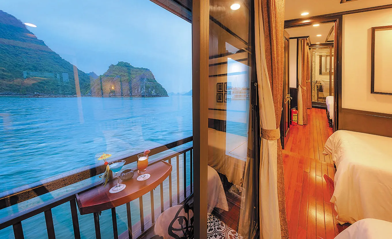 10:00: Lunchtime. During the time, a well-prepared Set menu lunch is served. Sena Cruise slowly navigates emerald water and thousands of Karst Mountains towards the Harbor.