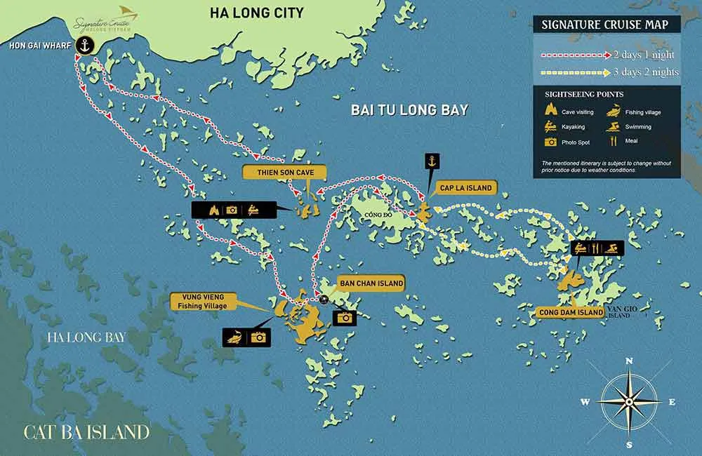 Signature Royal Cruises is proud to offer high quality facilities and special services to customers. Let's join Signature Cruise to discover spectacular scenery around Tonkin Bay including Halong Bay, Lan Ha Bay, Bai Tu Long Bay and more...